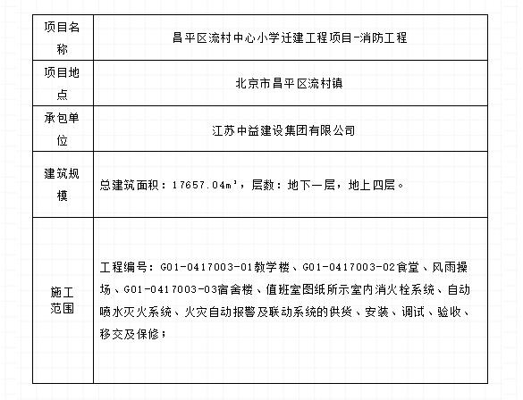 經(jīng)過公司領(lǐng)導(dǎo)的正確決策和各崗位管理人員的不懈努力,我們公司再次中標(biāo)昌平區(qū)流村中心小學(xué)遷建工程項目-消防工程,在此我們對為該項目的中標(biāo)付出辛勤努力的同志們表示熱烈的祝賀,希望再接再厲,爭取更大的成績。