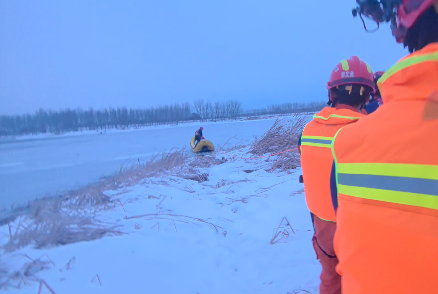 “被困男子站在一艘小船上,人沒有大礙,但他已經(jīng)被困一個多小時了。當時氣溫接近零下十攝氏度,在北風勁吹的空曠河面之上,人會感覺更冷。救人要緊,我們立即著手救援。”參與救援的消防員祁興龍說。