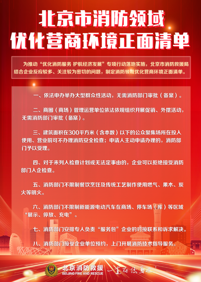 為推動(dòng)“優(yōu)化消防服務(wù) 護(hù)航經(jīng)濟(jì)發(fā)展”專項(xiàng)行動(dòng)落地實(shí)施,北京市消防救援局結(jié)合企業(yè)反映較多、關(guān)注較為密切的問題,制定了消防領(lǐng)域優(yōu)化營商環(huán)境正負(fù)面清單,下面我就清單內(nèi)容進(jìn)行通報(bào)。